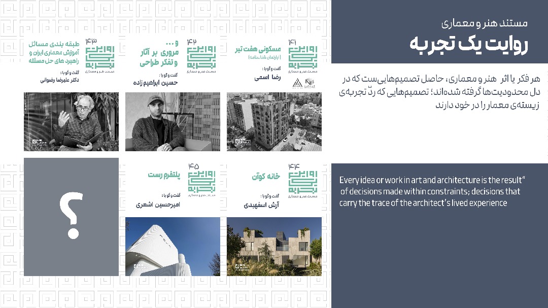 در دنیای معماری ، آنچه فراتر از فرم و عملکرد قرار میگیرد ، تجربه زیستهی معمار در مواجهه با پروژه و فضاست؛ تجربهای که درک آن تنها از مسیر روایت شخصی و حرفهای ممکن میشود.