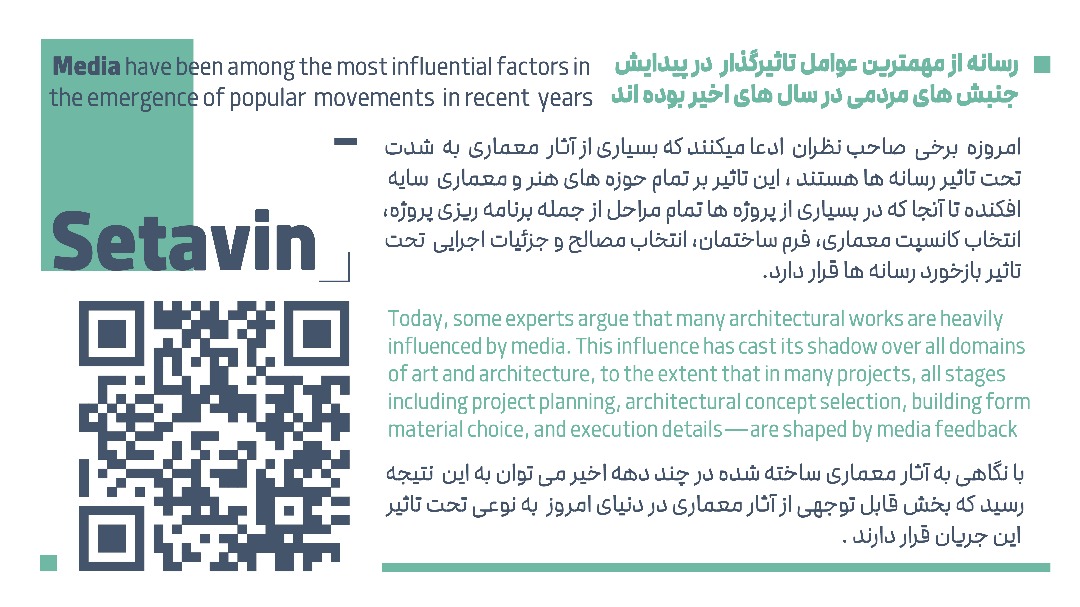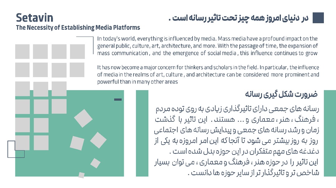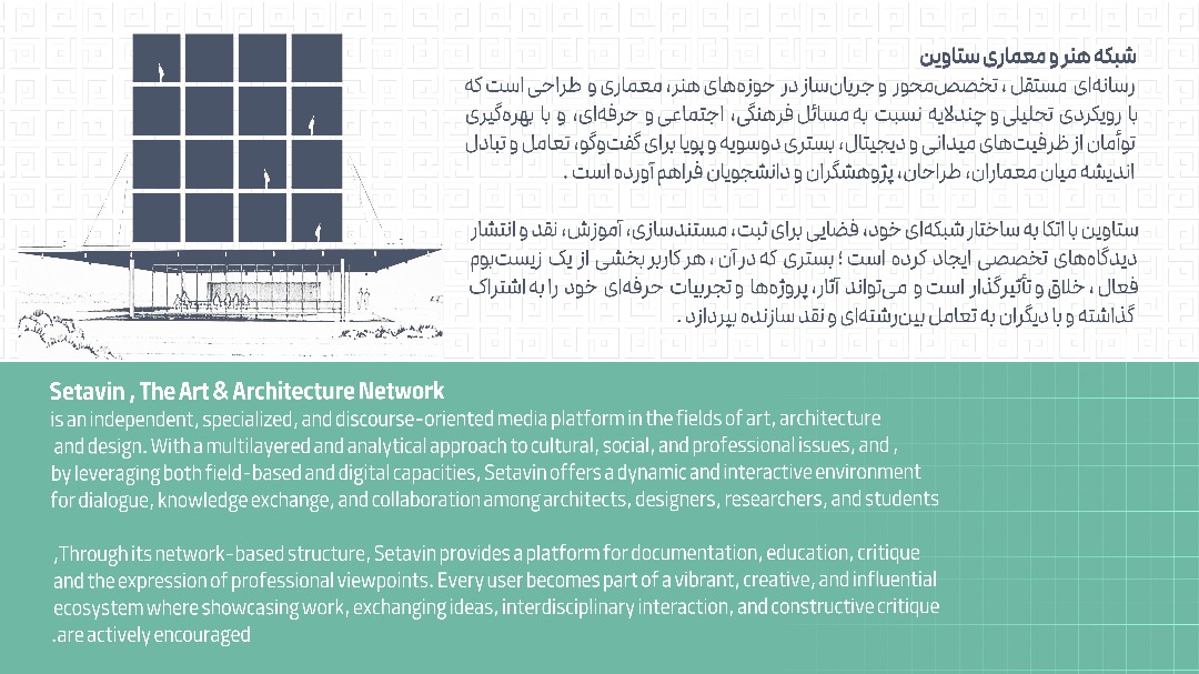 شبکه هنر و معماری ستاوین، رسانهای جریانساز و حرفه ای در قالب یک پلتفرم تخصصی در حوزههای هنر، معماری و طراحی است که با رویکردی تحلیلی و چندلایه نسبت به مسائل فرهنگی، اجتماعی و حرفهای، و با بهرهگیری توأمان از ظرفیتهای میدانی و دیجیتال، بستری دوسویه و پویا برای گفتوگو، تعامل و تبادل اندیشه میان معماران، طراحان، پژوهشگران و دانشجویان فراهم آورده است.