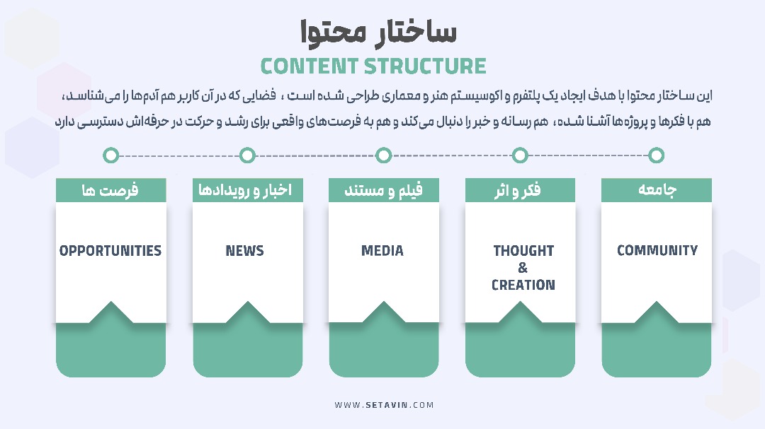 بخش های مختلف شبکه هنر و معماری ستاوین :